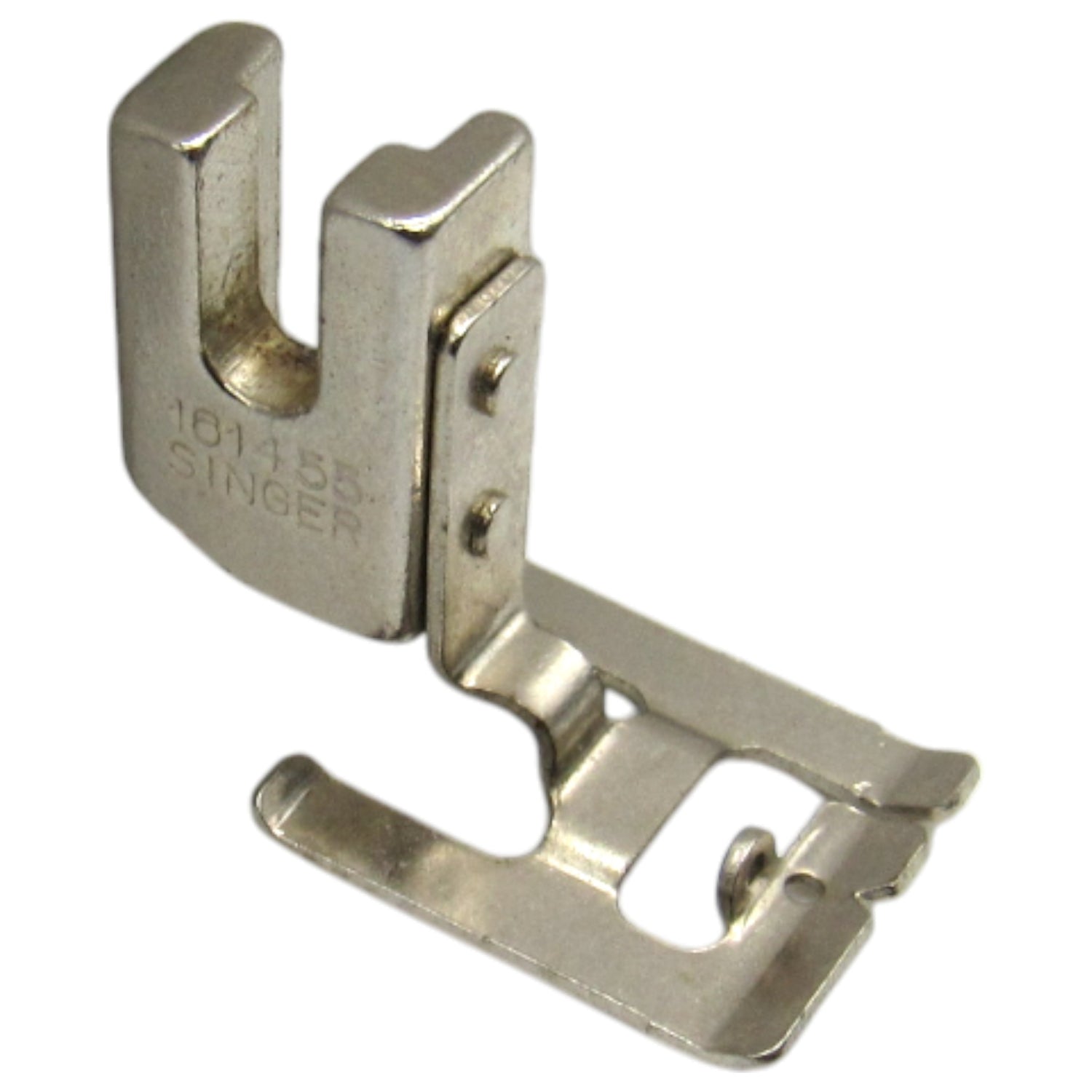 Original Singer Low Shank Special Purpose Foot part # 161455 is designed for zig-zag satin stitching, buttonholing and appliqué. This light flexible foot has a raised center section that allows closely spaced zig-zag stitches to feed evenly. The small eyelets at the front of the foot can hold a filler cord for decorative work or corded buttonholes.