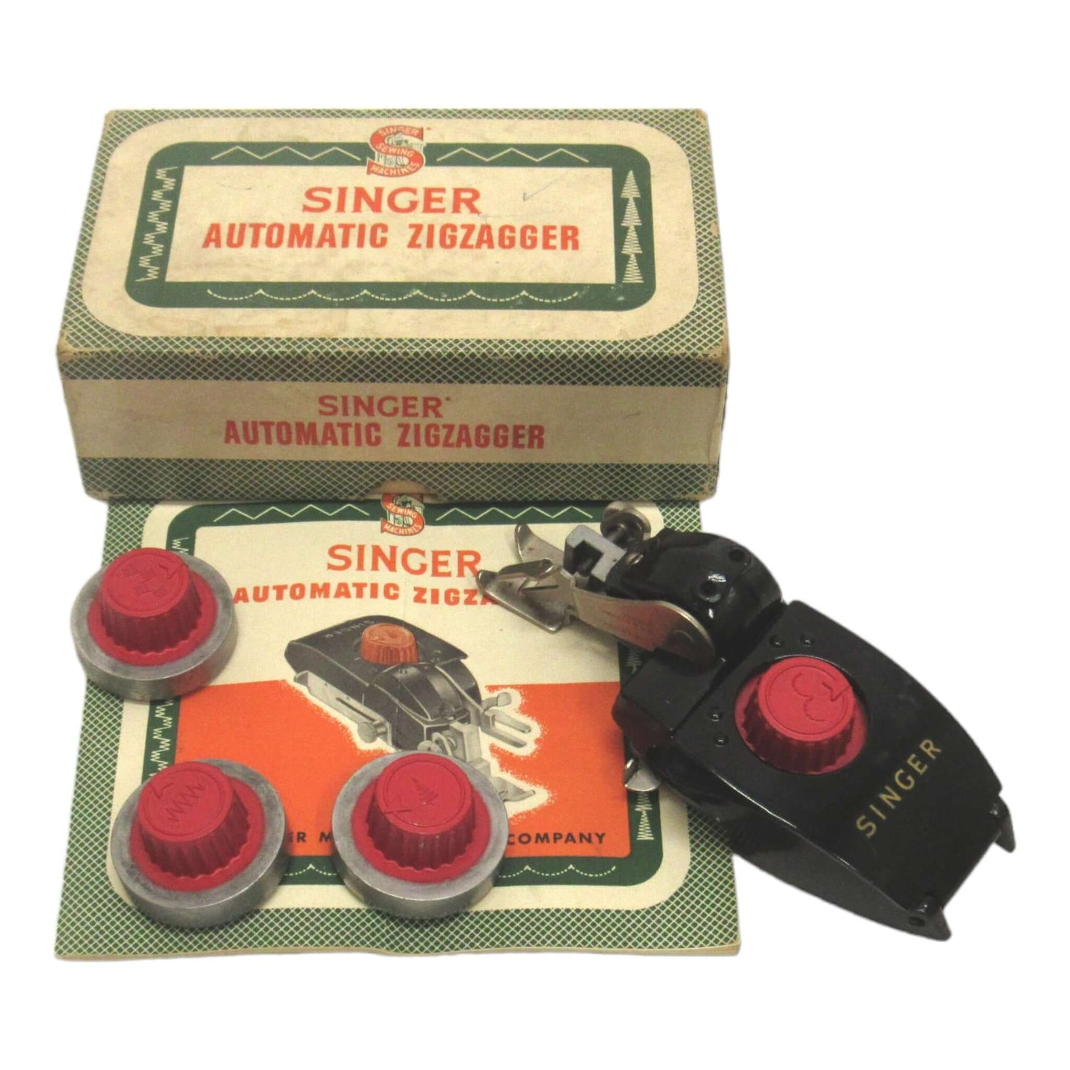 This Singer Sewing Machine Low Shank Automatic Zigzagger Attachment in Box - Part # 160985 is perfect for any sewing enthusiast.