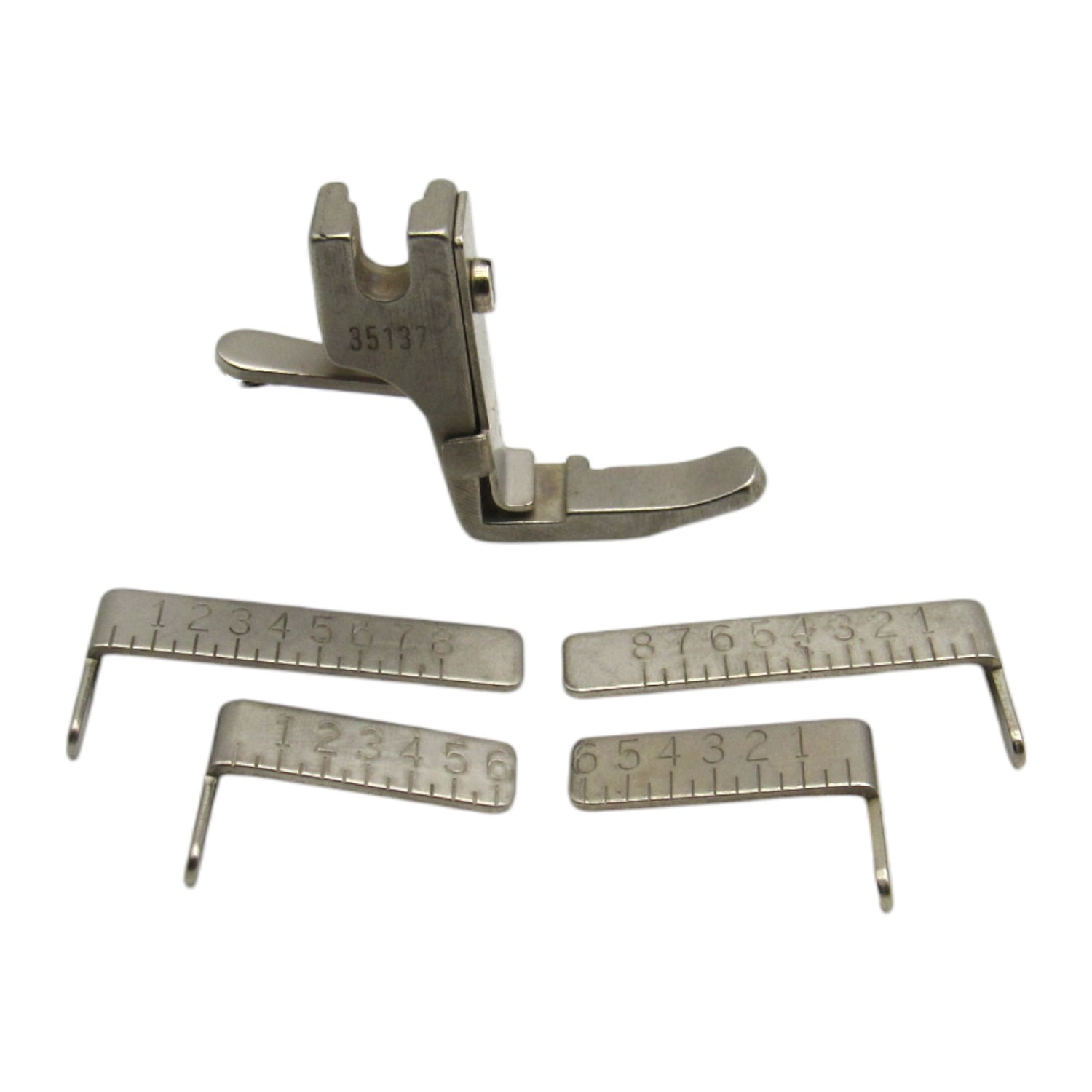 The industrial sewing machine gauge presser foot is an essential accessory for achieving precise stitching and consistent seam allowances on fabric. This device is specifically designed to fit single-needle high-shank machines, including various models from Singer. Once attached to the machine, the gauge presser foot serves as a reliable guide, ensuring that the fabric edge remains at a consistent distance from the needle. This distance can be easily adjusted to achieve the desired seam allowance. Whether hemming, topstitching, or finishing edges, the gauge presser foot is a helpful tool for maintaining uniform seam widths and achieving professional-looking results effortlessly.