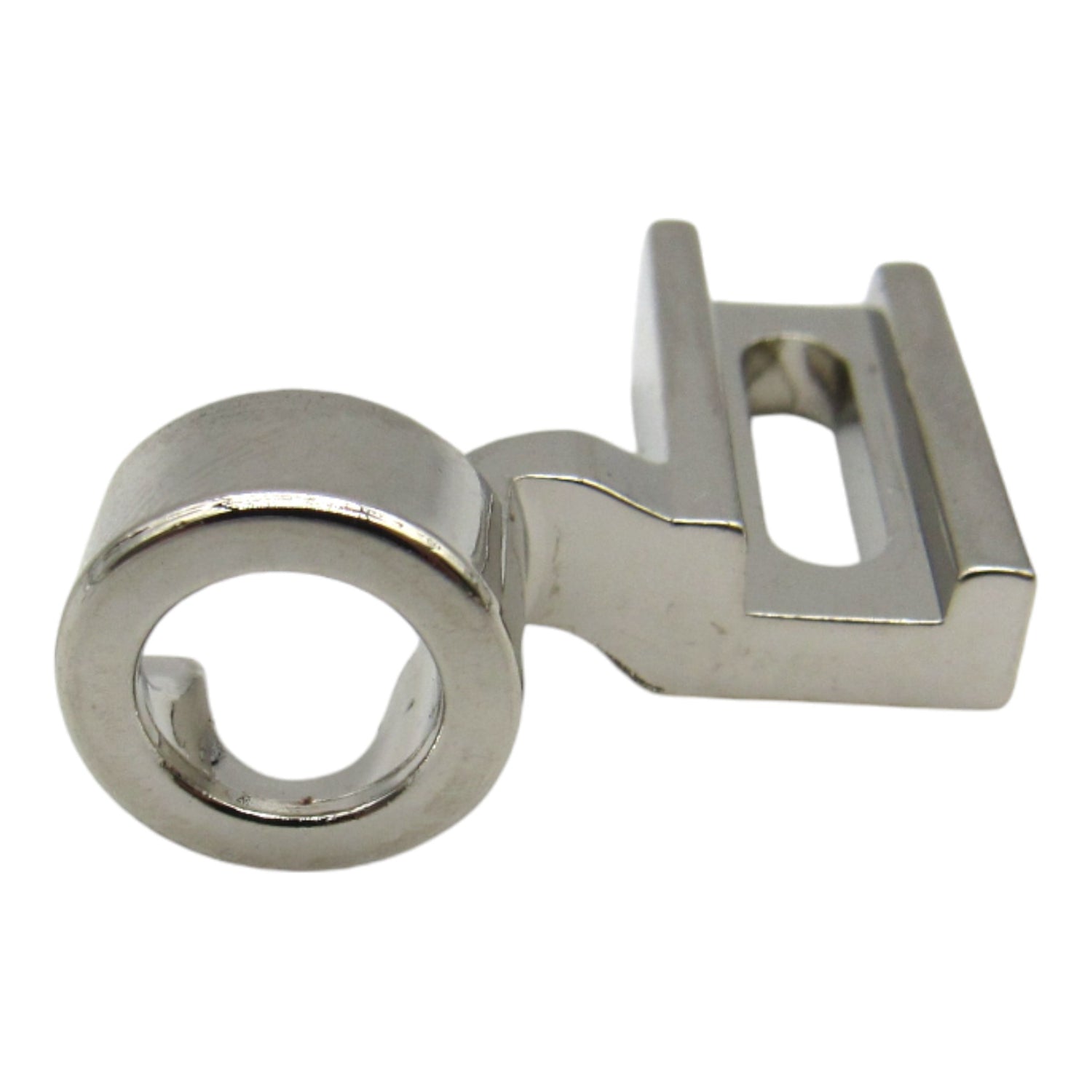 Foot has 2 U-shape recesses, one in the front for normal sit-down free motion quilting and another one on the side for stand-up quilting on frame for better visibility.