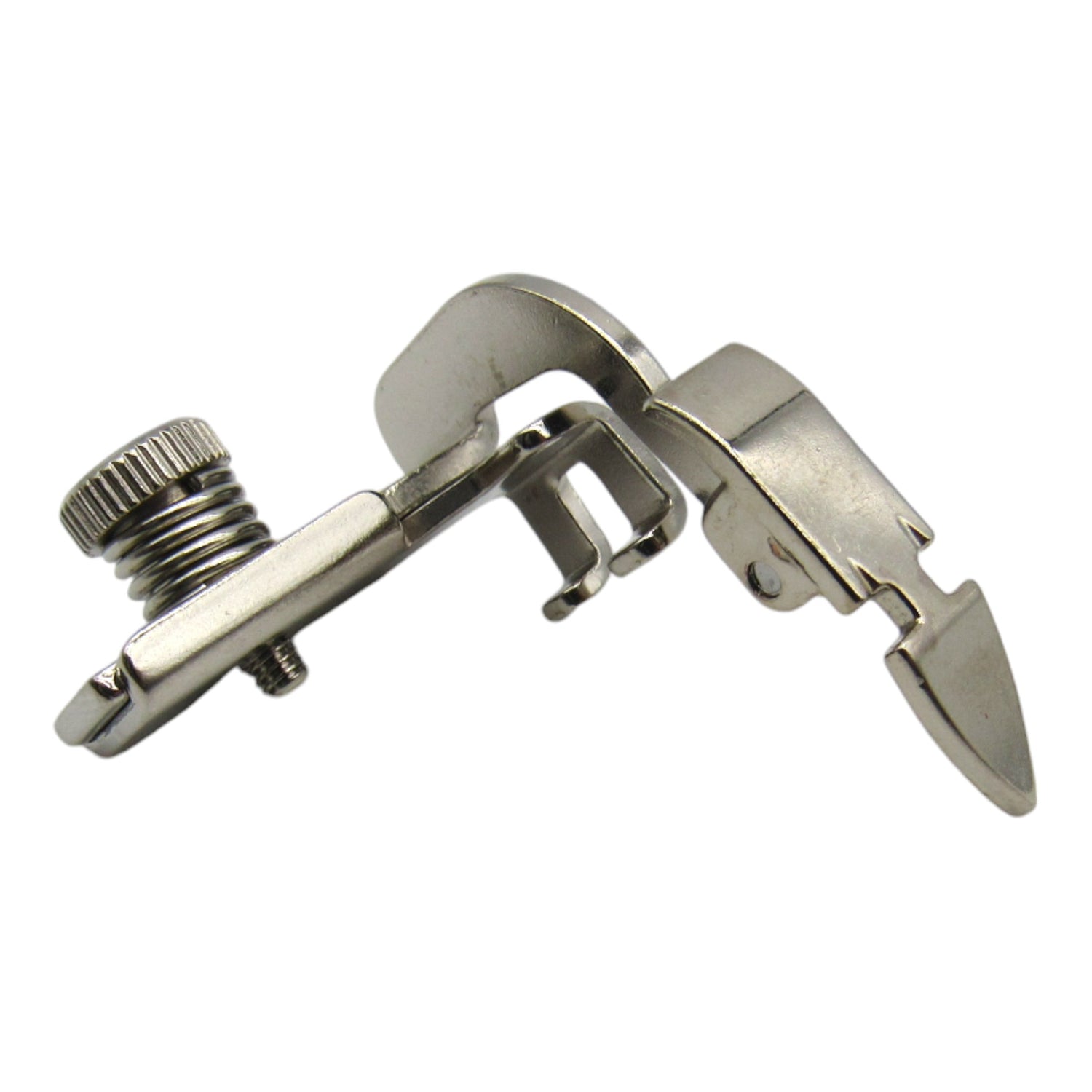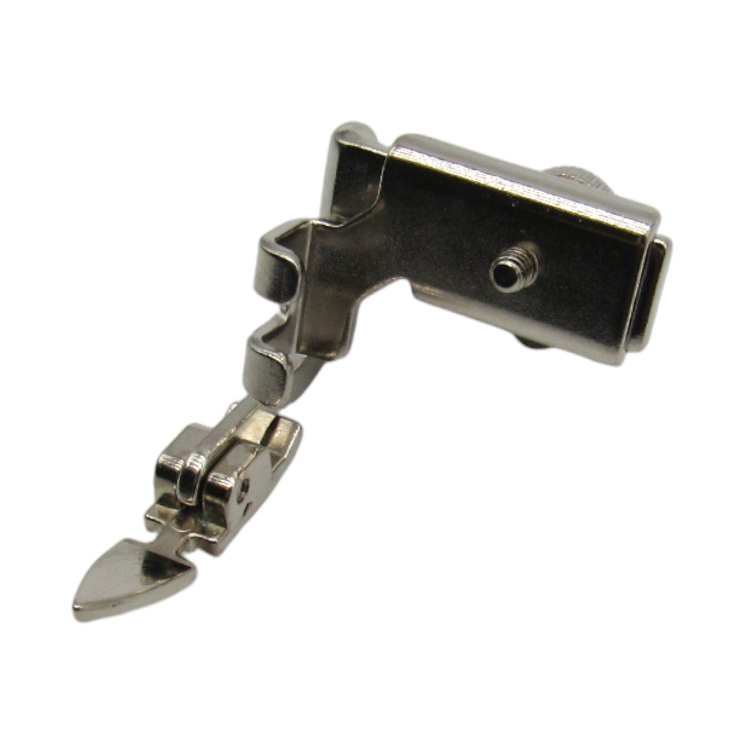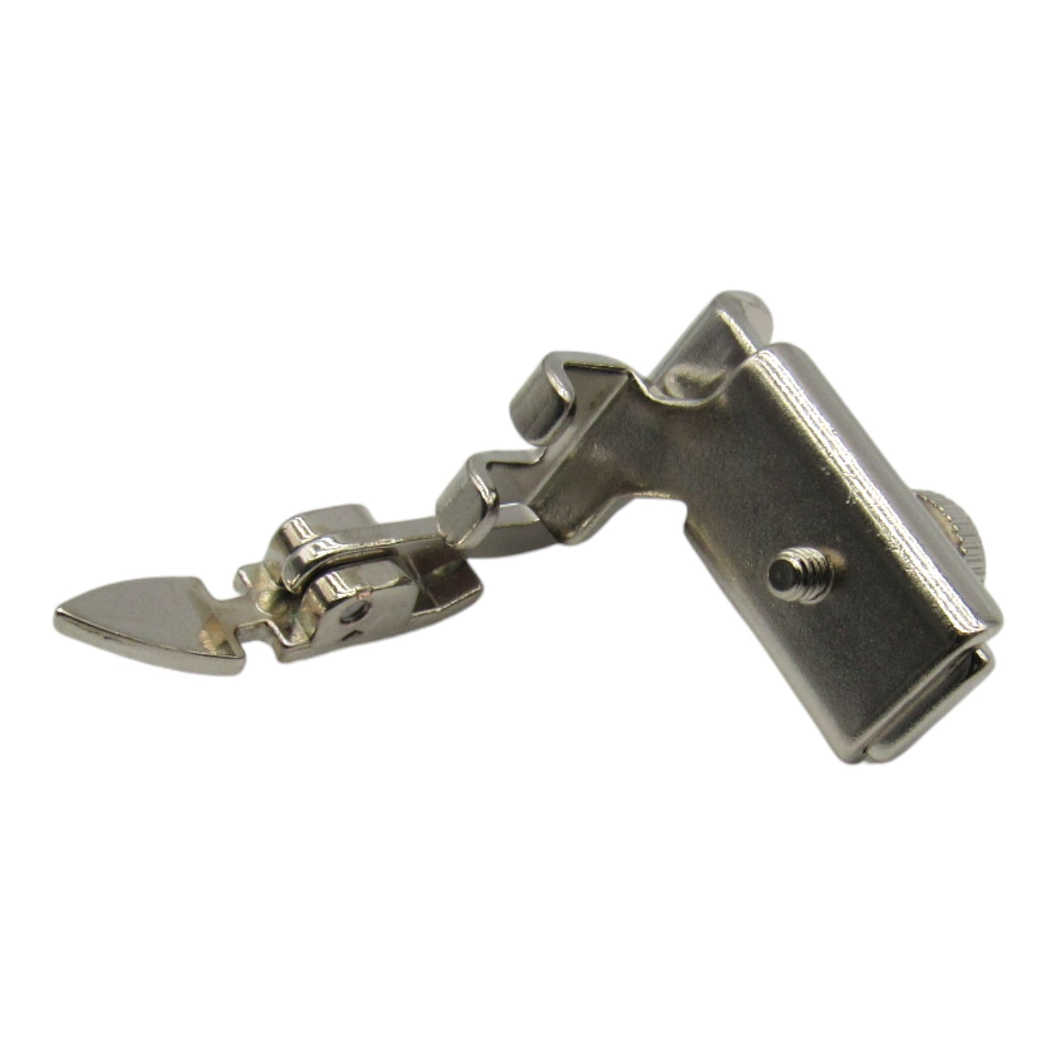 This adjustable hinged zipper foot is designed for low shank sewing machines. It simplifies the task of sewing close to a raised edge, making it perfect for cored seams, zippers, etc. The foot can be placed on either side of the needle, and also its hinge feature allows it to glide over pins, thick layers of fabric, and cross seams with ease.