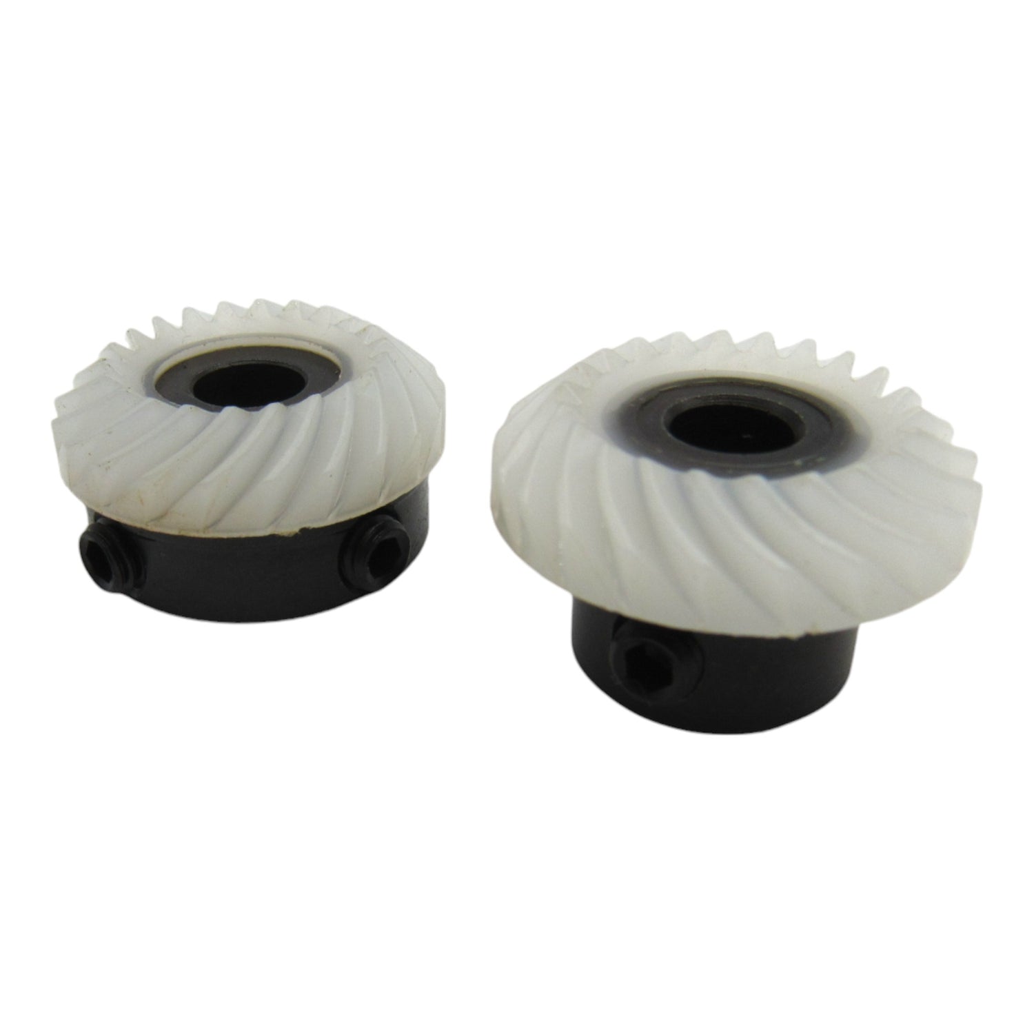 This angled two-gear set is an improved replacement for Singer part #163329 & 163997. It runs smoother, meshes better, and operates at a lower noise level. The replacement hook gear set features a high-quality build, and the part number is 382980.